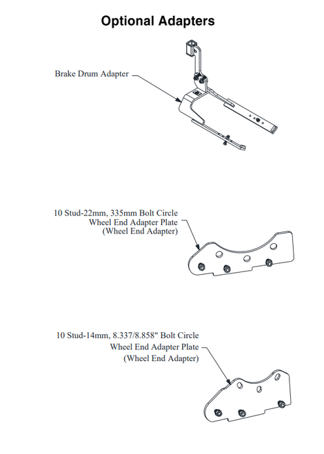 - Optional Brake Drum Adapter and additional wheel adapters also available