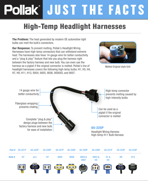 Our Response: To prevent melting, Pollak's Headlight Wiring