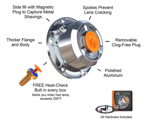 Comes with FREE TempBolt- a heat check sensor that alerts you if the hub temperature gets above 250 ° F