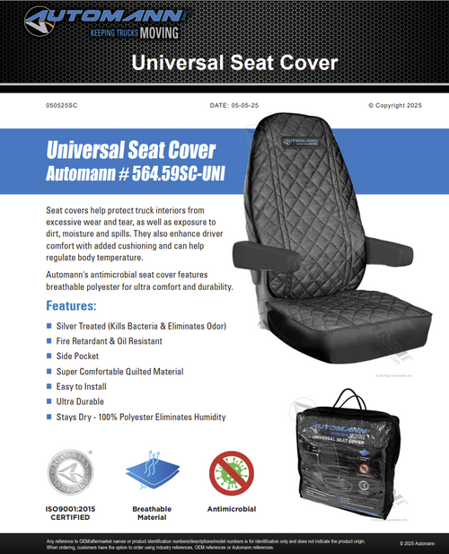 Description Antimicrobial Eliminates Humidity & Odors Universal For All Types of High-Back Seats Fire Retardant Oil Resistant Arm Covers Not Included